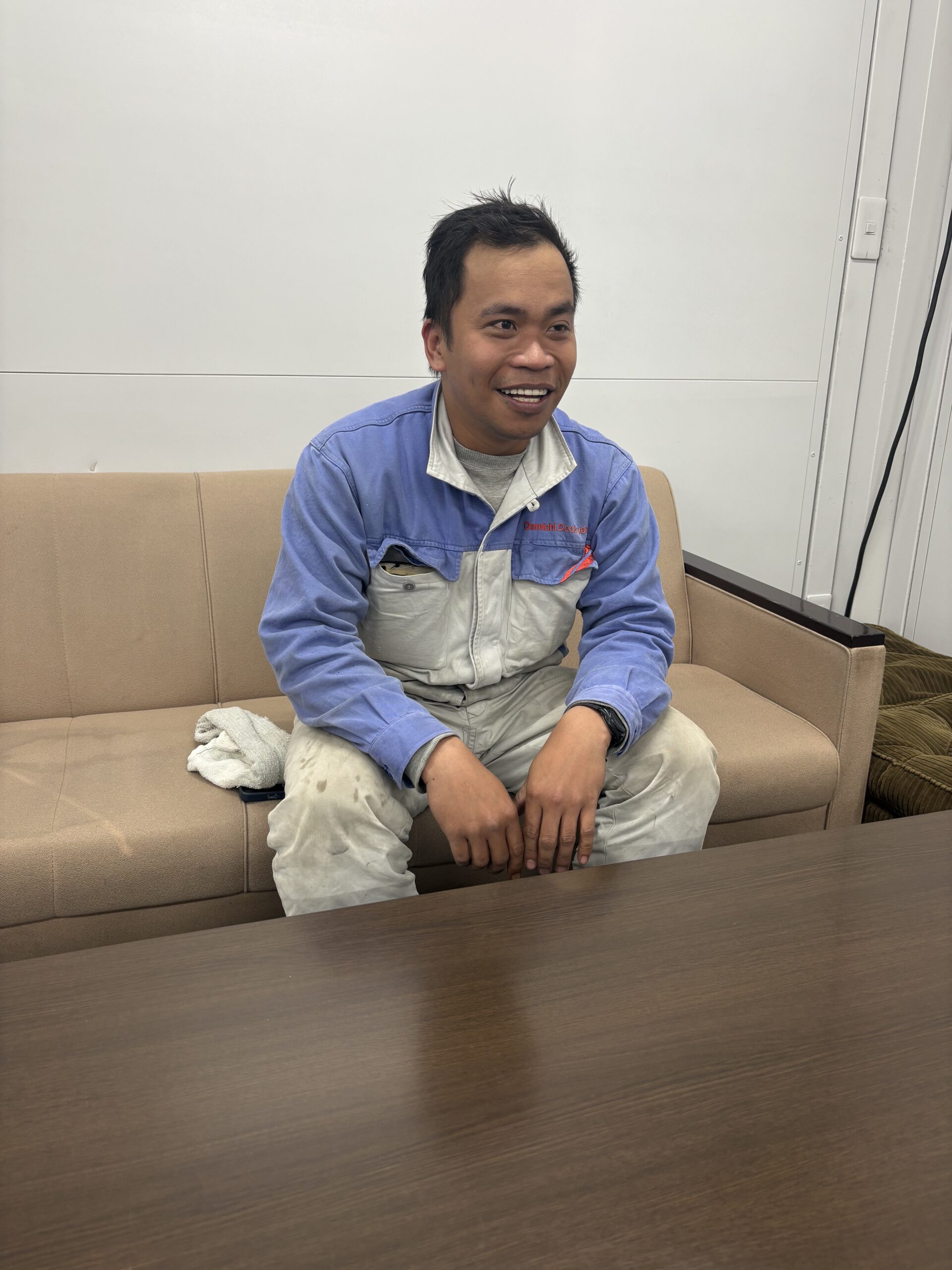 「僕たちが組み立てたブロックを船主さん(お客さん)がチェックしに来るんです。その検査が終わって、『いいね!』って良いフィードバックをもらえた時が、一番嬉しいですね。評価してもらえたんだなって」
